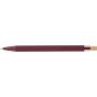 Újrahasznosított alumíniumból készült golyóstoll bambusz nyomógombbal és AS műanyag díszítéssel, fém klippel és a toll színével harmonizáló műanyag tollheggyel. A tolltesten lézergravírozott recycled (újrahasznosított) alapanyagra utaló logó található. Megközelítőleg 800 méter íráshosszúságú, kék színű tollbetéttel.