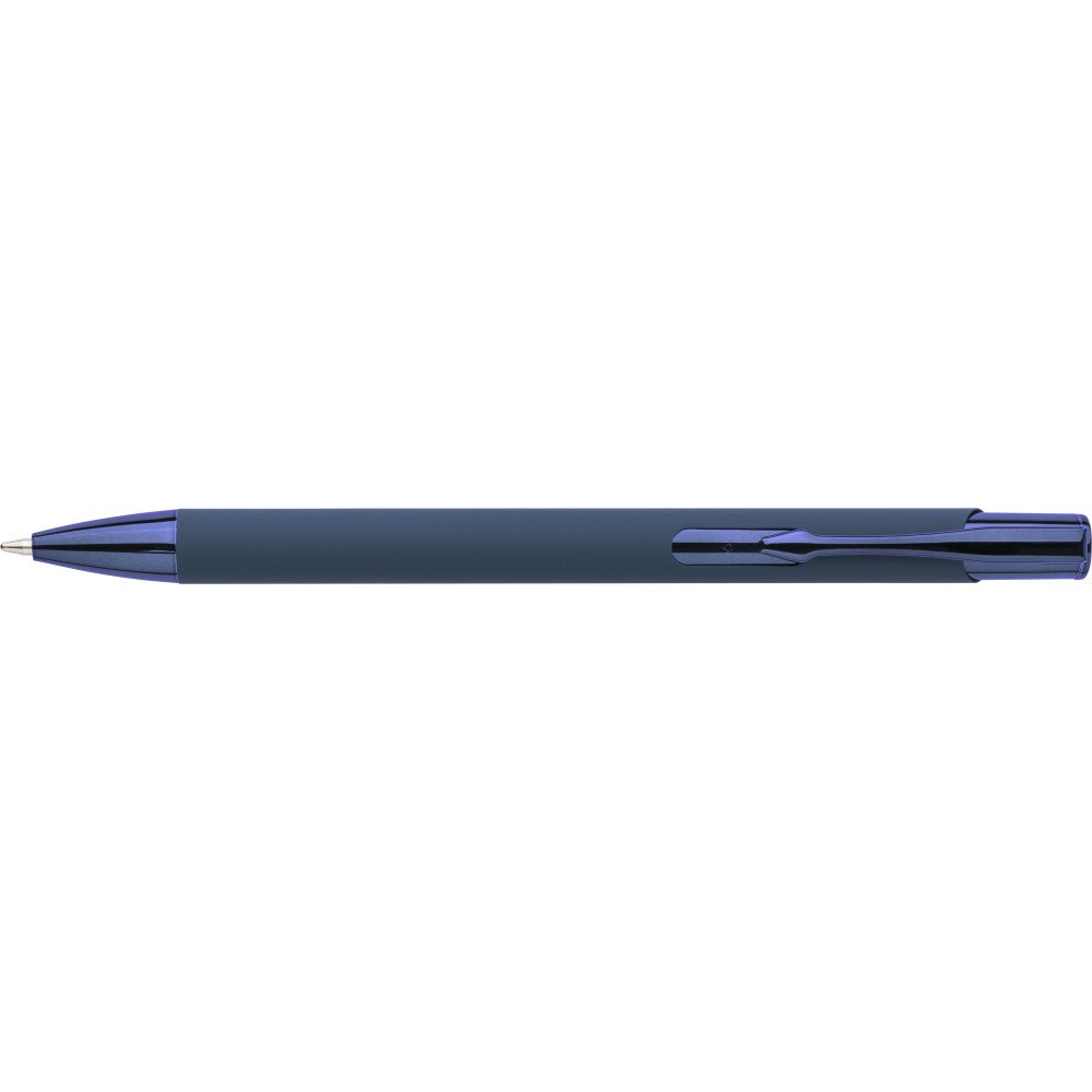 Újrahasznosított alumíniumból készült, gumírozott felületű golyóstoll, a toll színével harmonizáló UV-bevonatú műanyag és fém díszítéssel. Gravírozás után fényes tükörhatás jelenik meg. A tolltesten gravírozott recycled (újrahasznosított) alapanyagra utaló logó található. Megközelítőleg 800 méter íráshosszúságú, kék színű tollbetéttel.