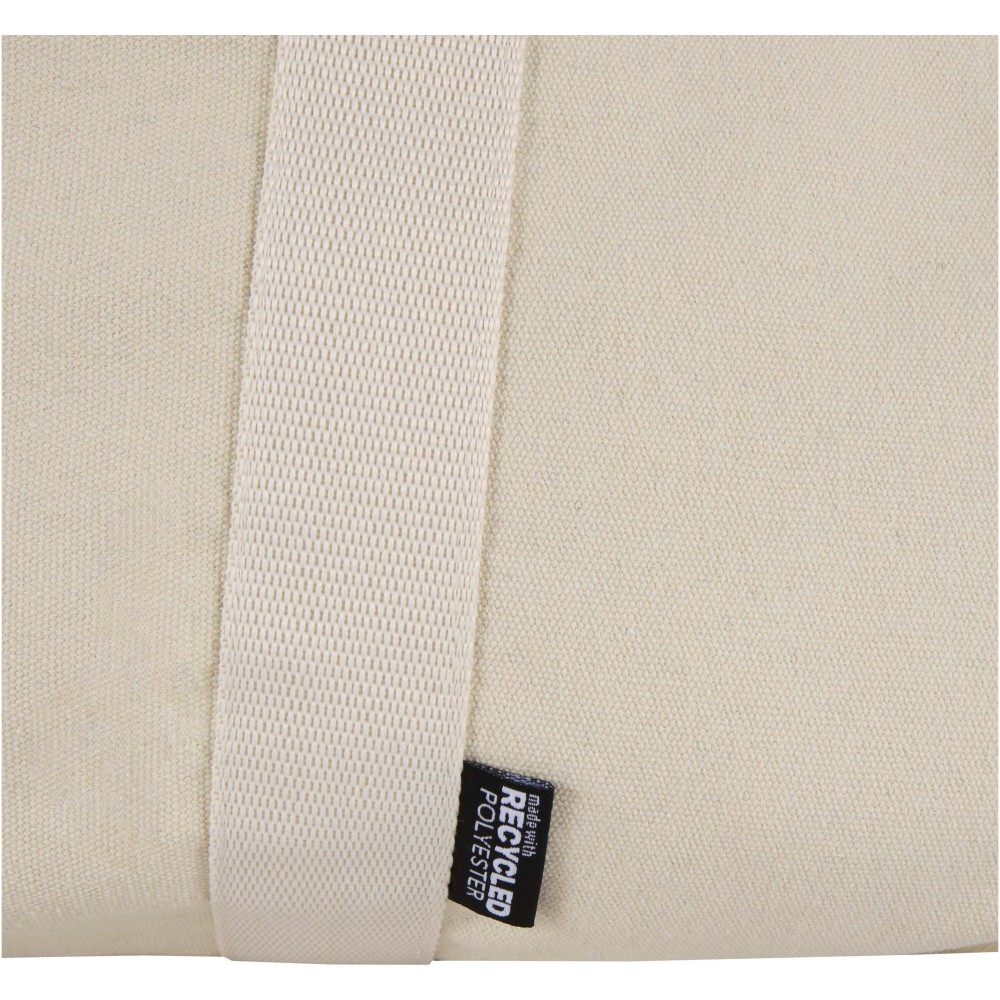 A Recanvas sporttáska GRS tanúsítvánnyal rendelkező, újrahasznosított és vízlepergető vászonból készült. A 40 literes űrtartalmú táska tágas főrekesze mellett egy cipzáras elülső zsebbel rendelkezik a gyorsan elérhető tárgyak számára, a kényelmes használatot pedig puha hordfülek, valamint a rugalmas hordozási opciókat biztosító lecsatolható és állítható vállpántok segítik. Kialakítása révén tökéletes választás edzőtermi használatra, hétvégi utazásokhoz vagy napi igénybevételre.