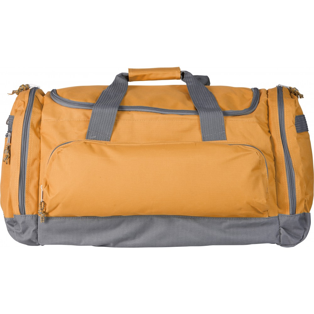 Utazótáska nagy cipzárral, oldal- és első zsebbel. 600D poliészter.